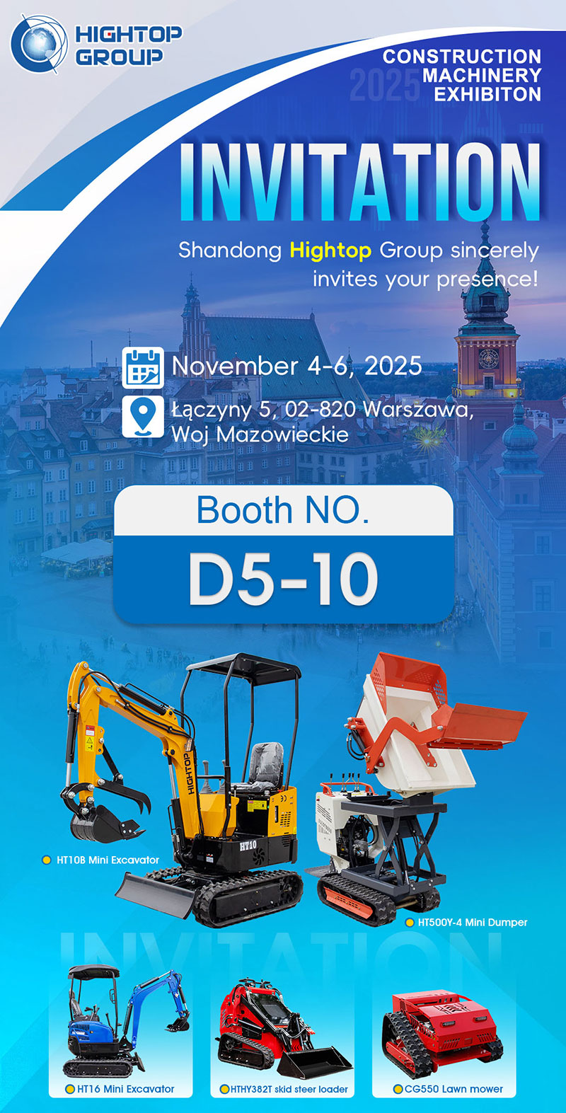 To deepen its strategic footprint in the European market, Shandong Hightop Group will make a major appearance at the Warsaw International Construction Machinery Exhibition in Poland from November 4 to 6, 2025 (Booth No.: D5-10). At this event, Hightop will showcase multiple star products tailored for European operating conditions, connecting with local clients and partners to jointly explore new construction paradigms.