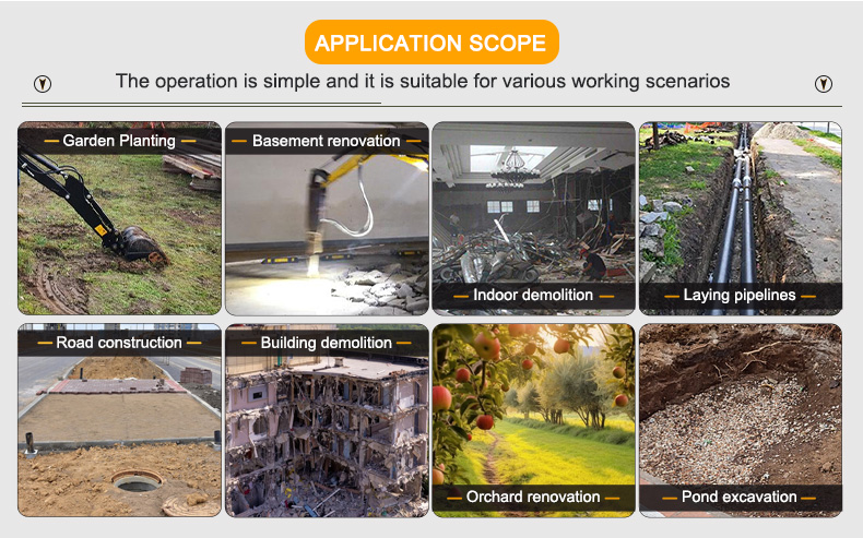 8. Practical bulldozer auxiliary function: With a maximum cutting depth of 369mm and maximum lift height of 253mm, the dozer blade independently handles site leveling, bulk material pushing, and foundation bedding. Eliminating the need for separate bulldozers, this single machine delivers dual “digging + grading” capabilities, boosting equipment utilization.