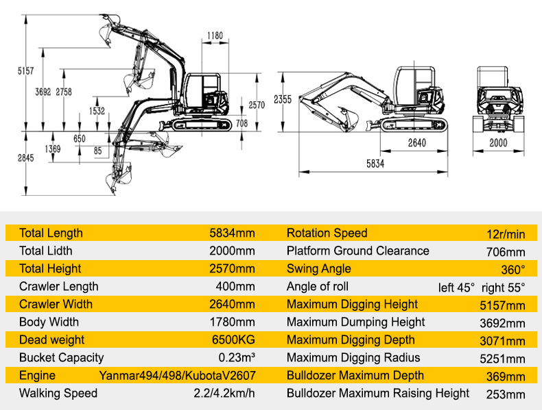 4. Reliable and Adaptable Power: Equipped with the YANMAR 494 engine—a proven, stable powerhouse in the industry—it delivers output perfectly matched to the 6.5-ton machine weight. This engine features low fuel consumption and minimal downtime, with readily available maintenance parts that reduce long-term operating costs.