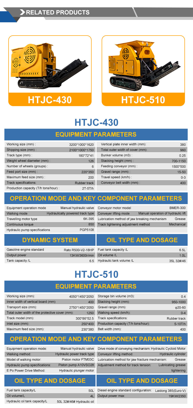 The HTJC325 E-type crusher is used as the first process for crushing various ores, and can crush various ores with compressive strength not exceeding 240MPa to medium particle size in one go.