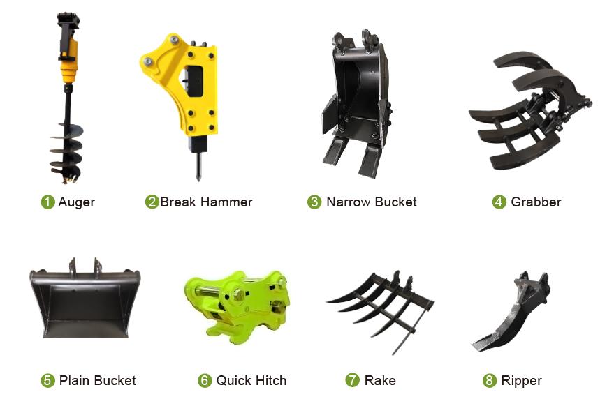 (4) Auger, grab, hydraulic hammer, narrow bucket can be installed on this excavator, efficient and wide-range use.